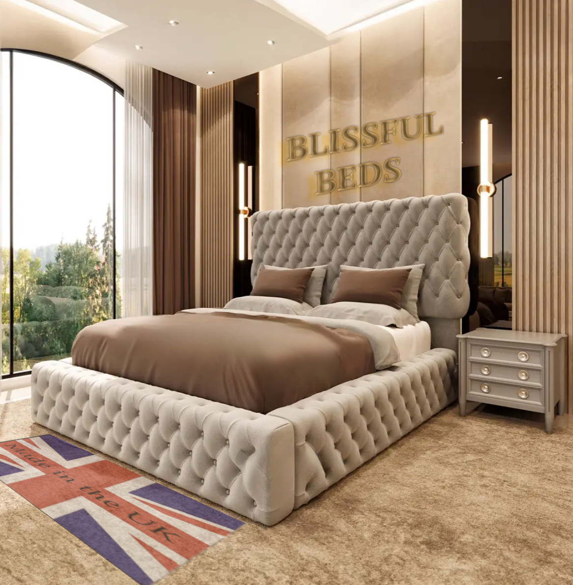 At Blissful Bedsâ„¢, we take pride in offering a distinguished collection of luxury beds, expertly crafted to the highest standards in Manchester, England. Each of our beds is constructed using premium materials, ensuring exceptional durability and providing a comfortable, restful sleep for years to come.