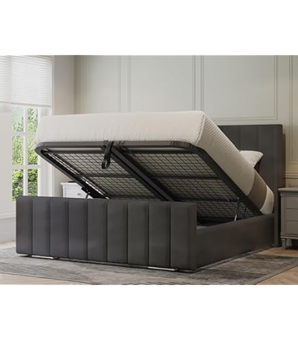 A slatted gas lift bed combines the benefits of a slatted base with the convenience of built-in storage. The bed features a series of horizontal slats, usually made of wood or metal, that provide flexible, breathable support for the mattress. This slatted structure allows for excellent airflow, promoting mattress longevity and comfort.
